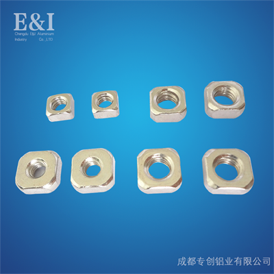 四方螺母安裝時(shí)需預(yù)塞至鋁型材槽內(nèi),用于在型材上連接各種配件。